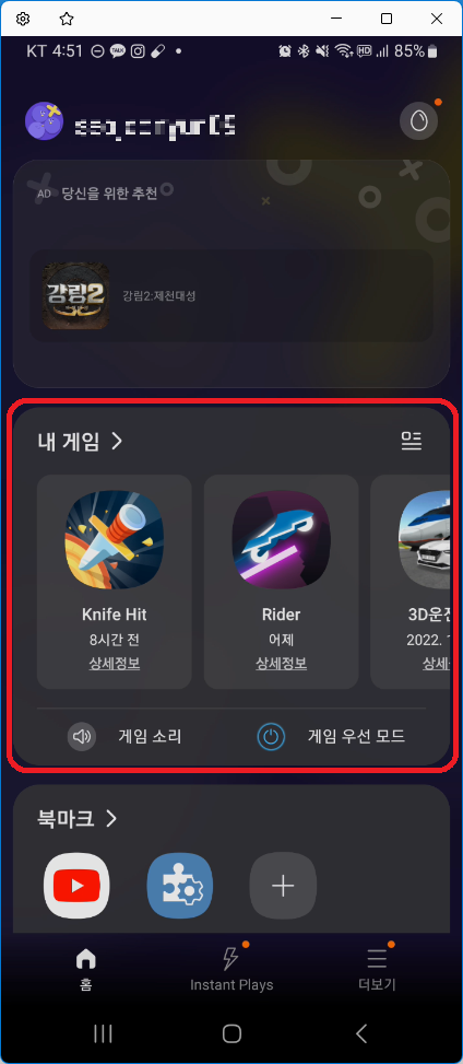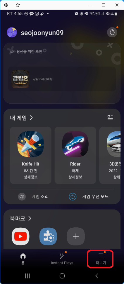 이제 이 앱을 클릭해보면 자신이 설치한 게임이 보일 것입니다.