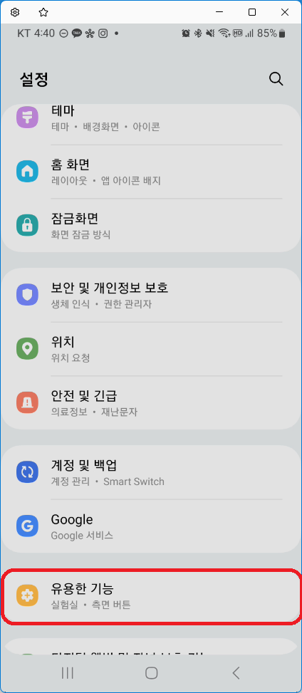 여기서 아래로 조금 내려 '유용한 기능'을 클릭합니다.