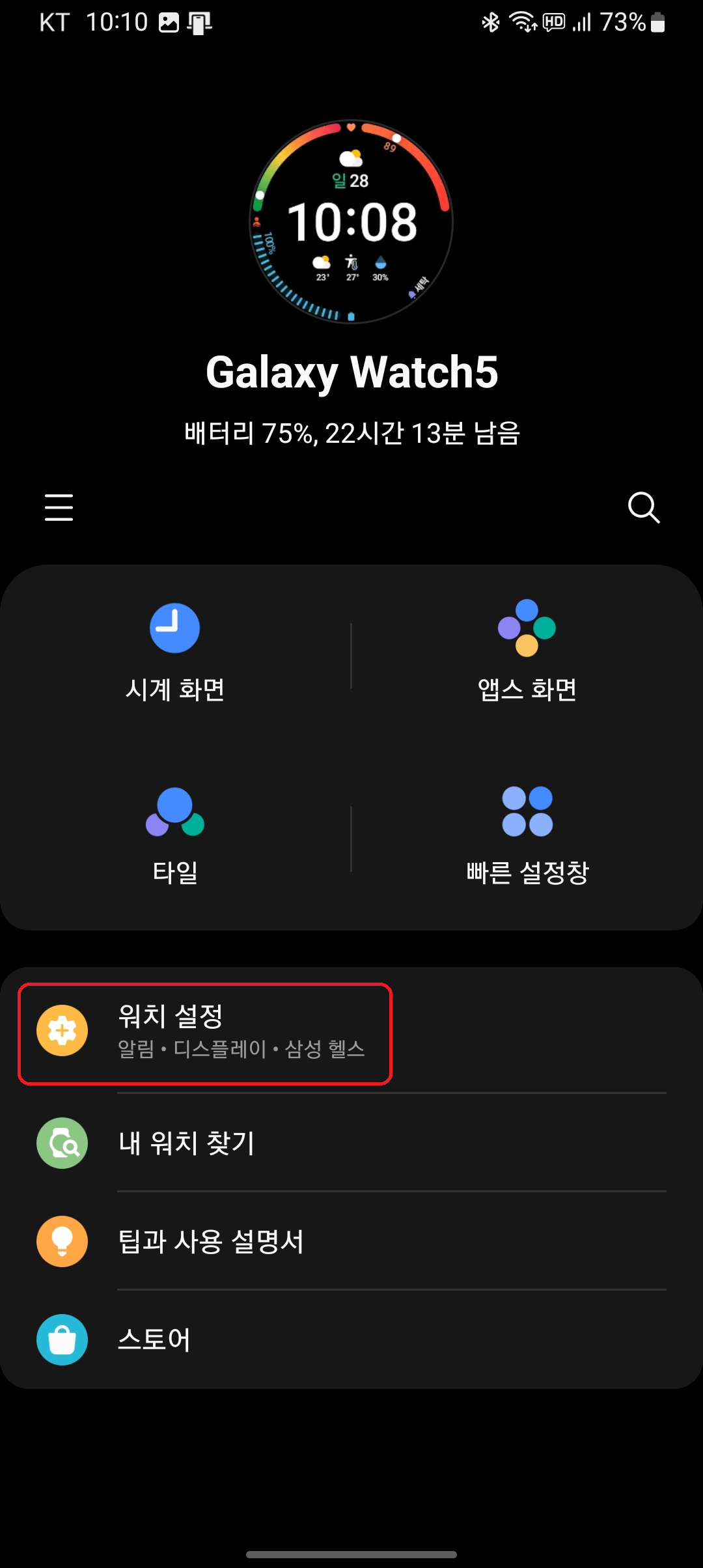들어간 다음 '워치 설정'을 눌러줍니다.