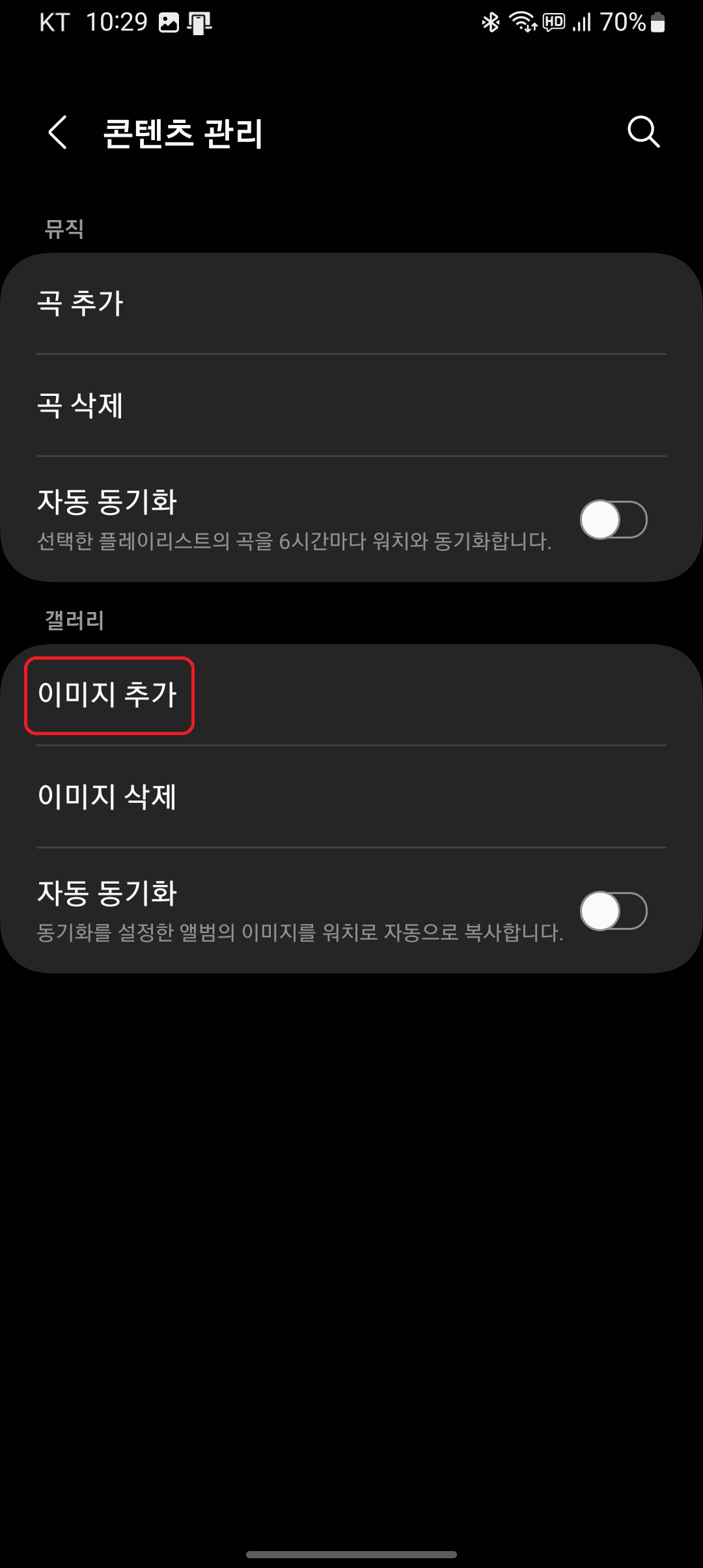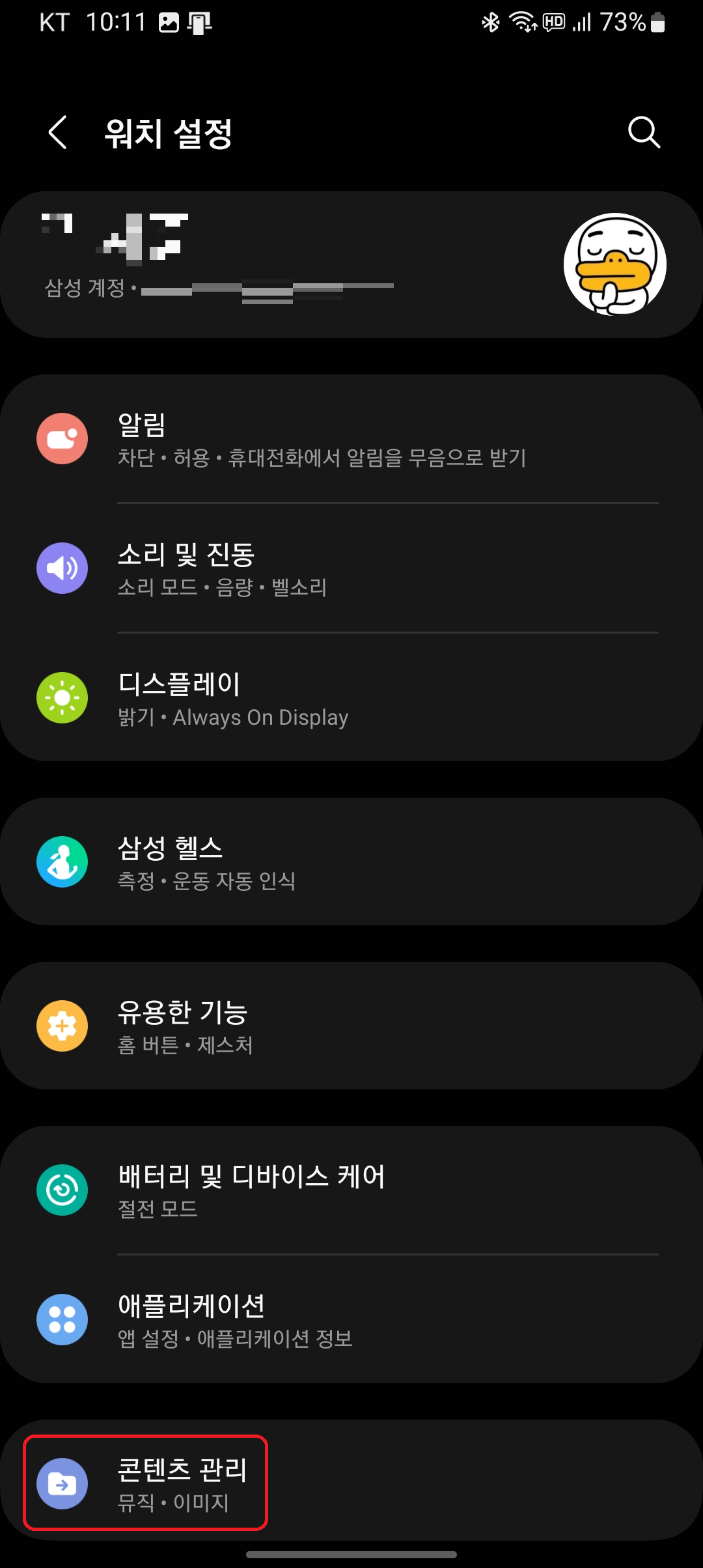 그런 후 '콘텐츠 관리'를 눌러줍니다.